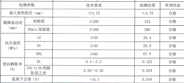 5、灌漿料耐久性:200萬次疲勞實(shí)驗(yàn),50次凍融循環(huán)實(shí)驗(yàn)強(qiáng)度無明顯變化。